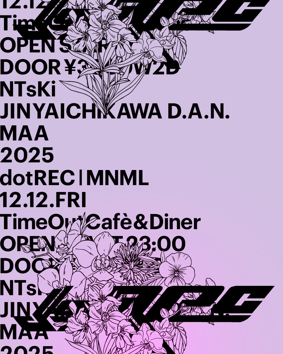 12/12 dotREC | MNML 2025.12.01 EVENT ※本公演は深夜公演につき20歳未満の方のご入場はお断り致します。 本人及び年齢確認のため、ご入場時に顔写真付きの身分証明書(免許書/パスポート/住民基本台帳カード/マイナンバーカード/在留カード/特別永住者証明書/社員証… READ MORE