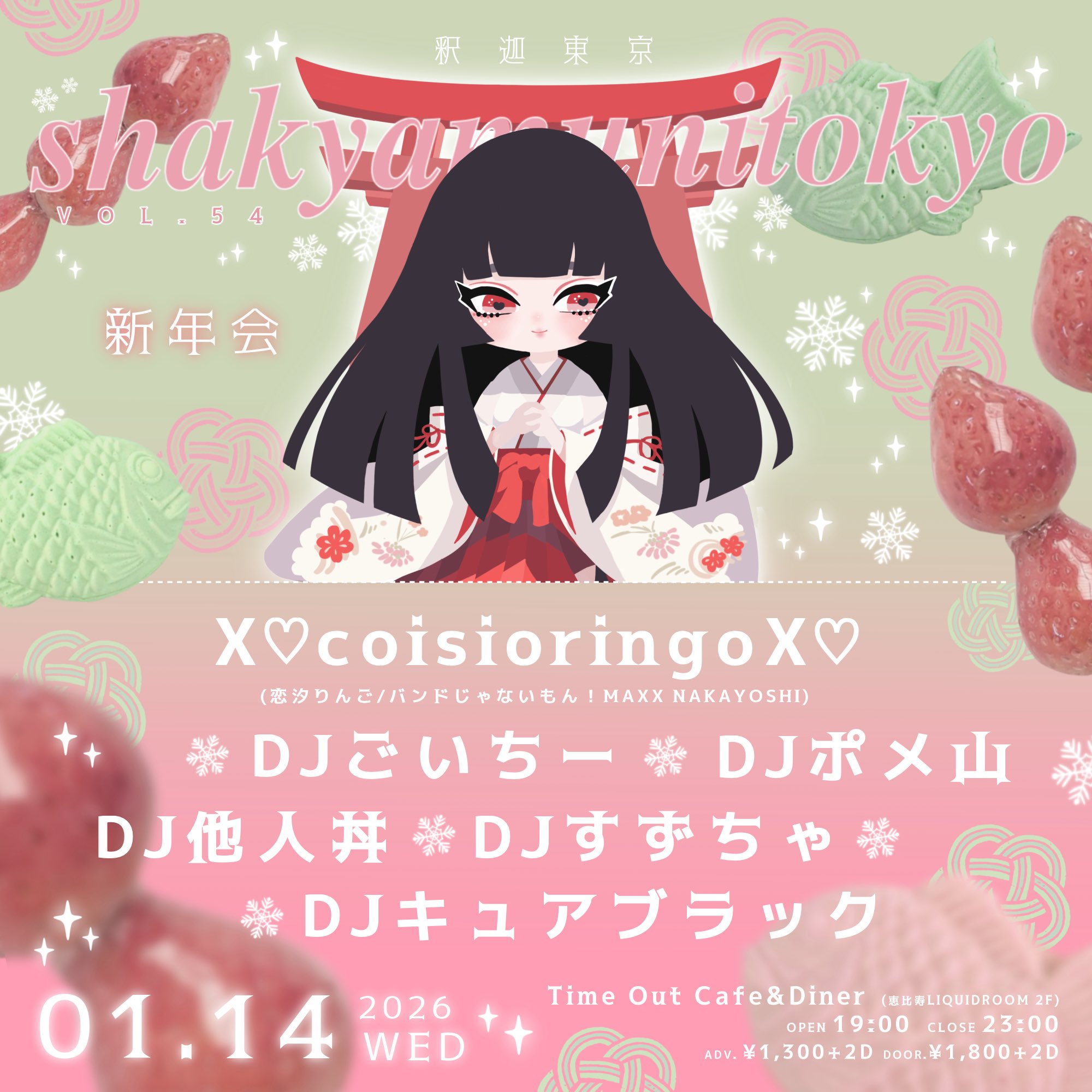 1/14 #釈迦東京 vol.54 ⛩️ 新年会 ⛩️ 2026.01.07 EVENT 出演: X♡coisioringoX♡ (恋汐りんご/バンドじゃないもん!MAXX NAKAYOSHI) DJごいちー DJ他人丼 DJポメ山 DJすずちゃ DJキュアブラック ★予約フォーム… READ MORE