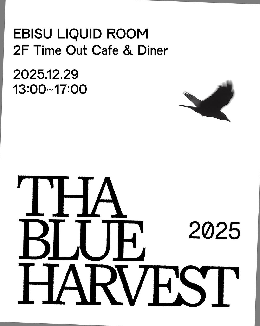 詳細はこちら 2025.12.29 open – close 13:00 – 17:00 Time Out Cafe & Diner [LIQUIDROOM 2F]