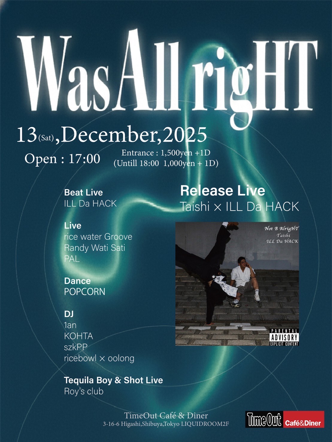 “Was All rigHT “ Day :2025.12.13(SAT) 17:00 OPEN Place :TimeOut Café & Diner 東京…