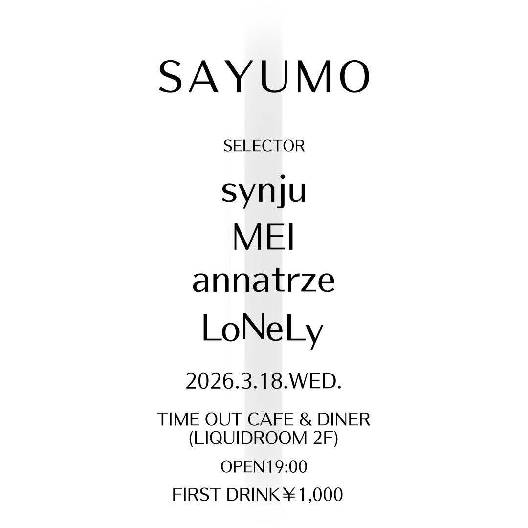 2026.3.25 Wednesday open 19:00 / closed 23:00 Time Out Cafe & Diner (LIQUIDROOM 2F) entrance fee. adv.¥1300 / door.¥1800 ※2ドリンク代金別 |